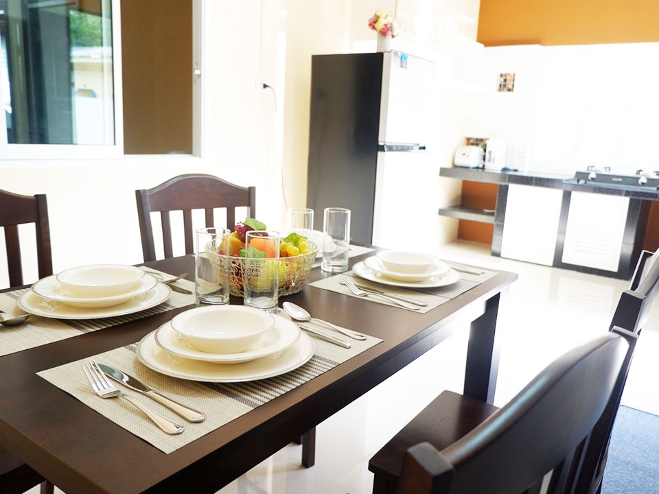ภายในตัวบ้าน ตกแต่งให้ดูอบอุ่น และกว้างขวาง โปร่งโล่ง และ ที่สามารถปรับเปลี่ยนเป็นห้องต่างๆตามใจชอบ พื้นที่ส่วนรับประทานอาหาร และห้องครัวถูกแยกอย่างเป็นสัดส่วนไม่ส่งกลิ่นรบกวนภายในบ้าน