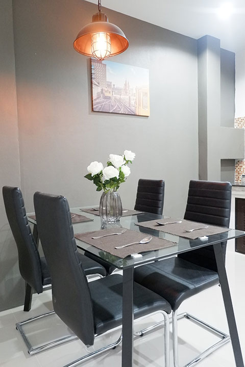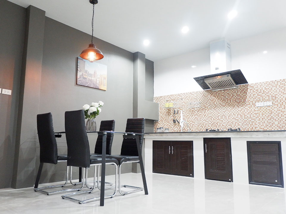 ภายในตัวบ้าน ตกแต่งให้ดูอบอุ่น และกว้างขวาง โปร่งโล่ง และ ที่สามารถปรับเปลี่ยนเป็นห้องต่างๆตามใจชอบ พื้นที่ส่วนรับประทานอาหาร และห้องครัวถูกแยกอย่างเป็นสัดส่วนไม่ส่งกลิ่นรบกวนภายในบ้าน